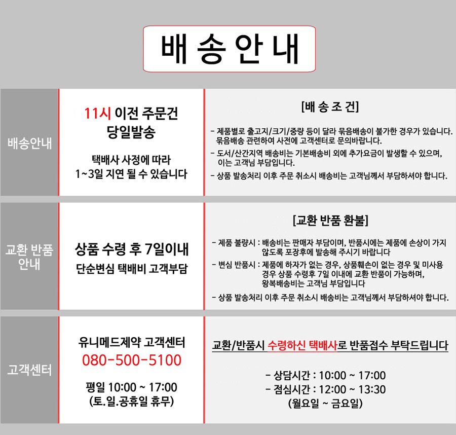 배송 안내 : 산간벽지나 도서지방은 별도의 추가금액을 지불하셔야 하는 경우가 있습니다.